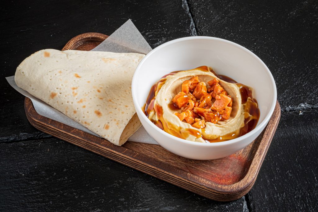 chickpeas, tahini pasta, olive oil, cumin, pita bread