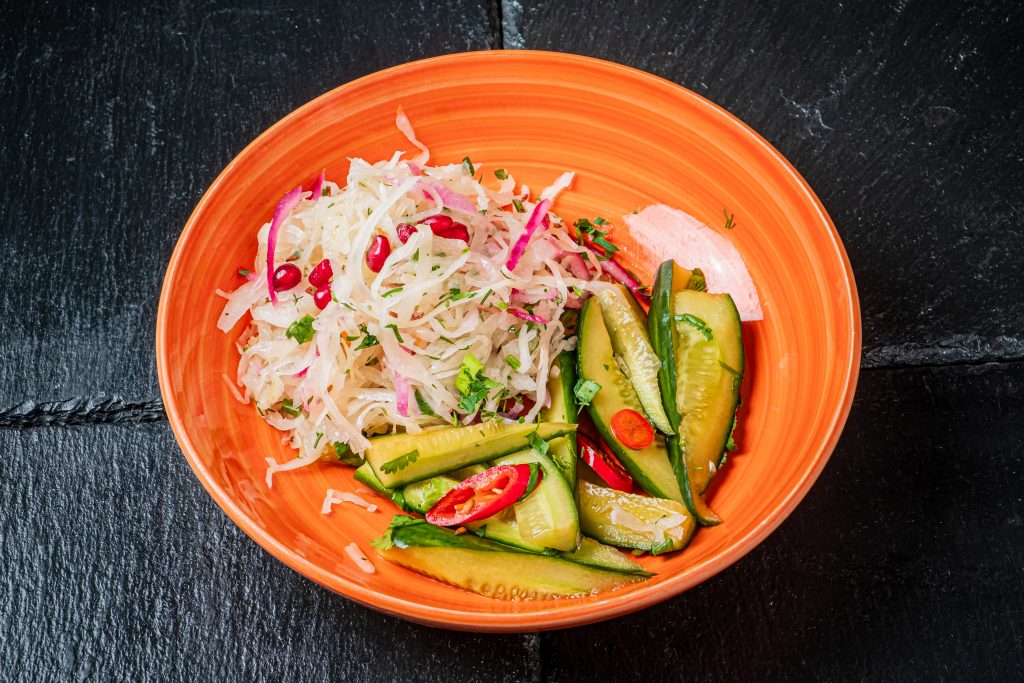 Sweet pepper, cherry tomatoes, barrel-pickled cucumber, spicy carrot.
