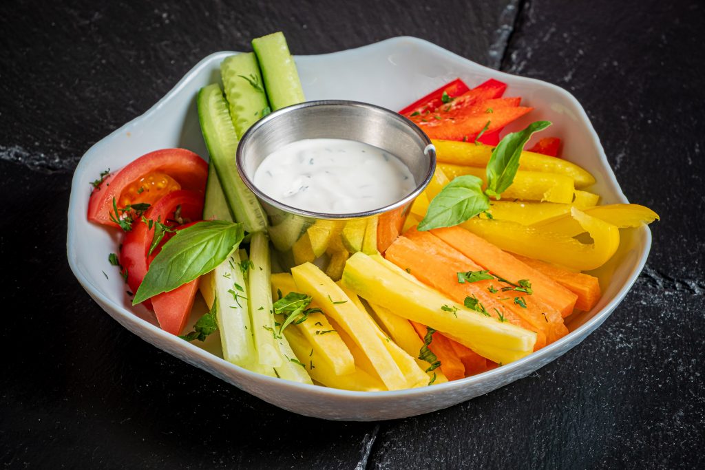 Fresh cucumber, tomato, sweet pepper, radish and greens, served with garlic sauce.